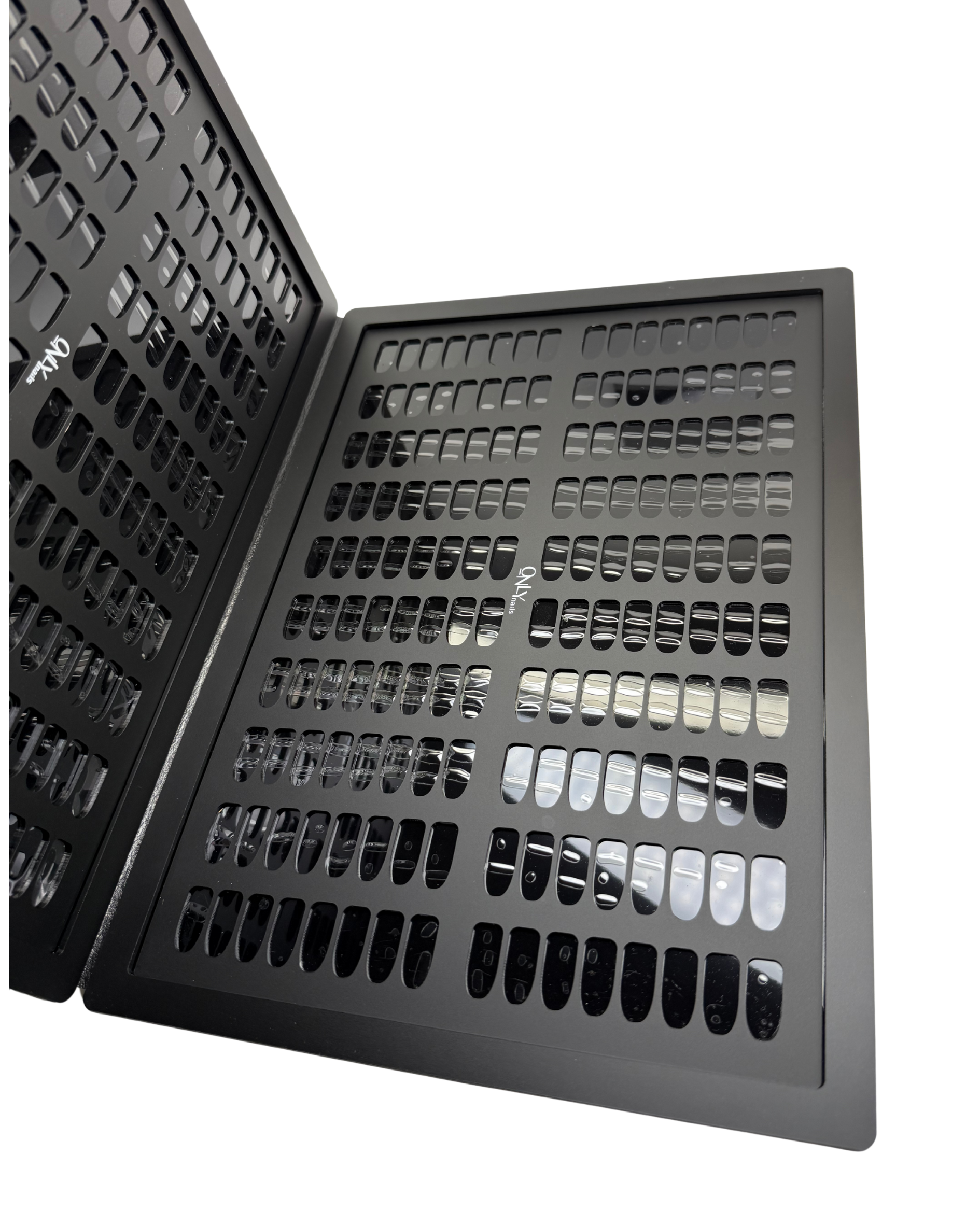 Organizujte svoju kolekciju gelova, lakova i baza na elegantan i pregledan način uz Only Nails knjigu za izlaganje do 320 boja.
